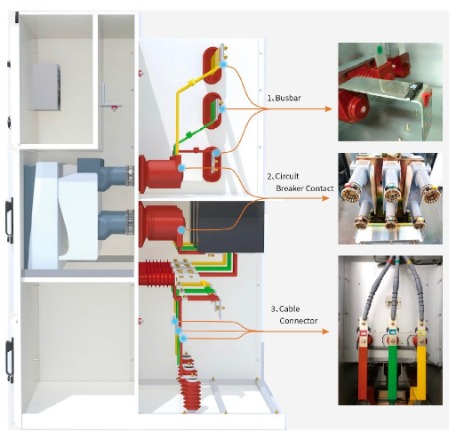 Sovellus: kaapeliliitokset/virtakiskot/koskettimet LV/HV-kytkimissä