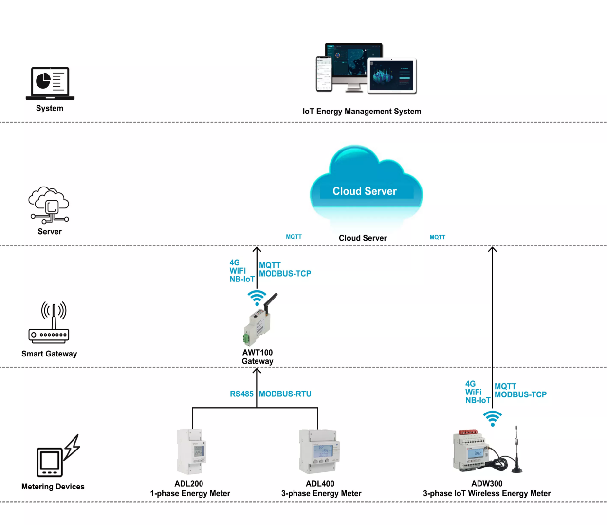 | ADW300 | ADW300 langatonta mittaria käytetään pääasiassa pienjänniteverkon kolmivaiheisen pätötehon mittaamiseen. Siinä on RS485-viestintä ja langattomat WiFi/4G/Ethernet/LoRa-viestintätoiminnot, joiden avulla käyttäjät voivat kätevästi seurata, lukea ja hallita sähkönkulutusta. Se voidaan asentaa joustavasti jakolaatikkoon eri alueiden ja eri kuormituksen alakohteiden tehomittauksen, tilaston ja analyysin saavuttamiseksi. | |
