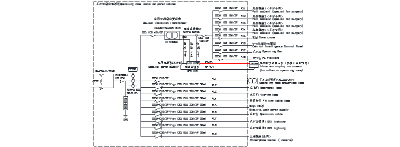 Leikkaushuoneen jakeluratkaisut (esimerkiksi GGF-O8G:n eristyssähkökaapin järjestelmäkaavio)